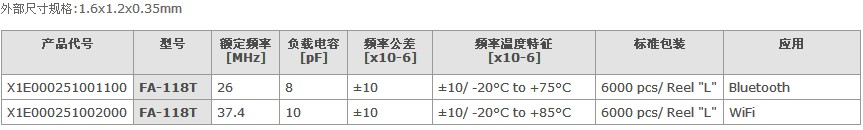 愛普生石英晶振1612系列,FA-118T晶振產(chǎn)品代碼