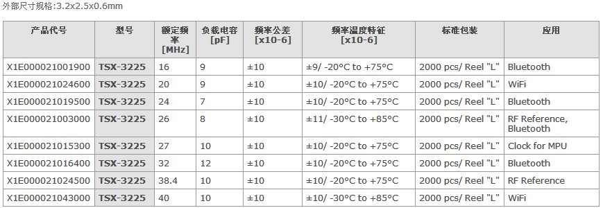 愛普生晶振TSX-3225晶振型號代碼一覽表
