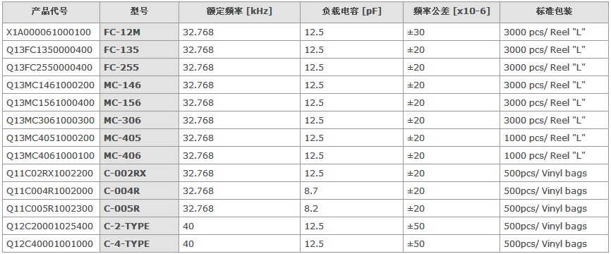 愛普生晶振,32.768K系列產(chǎn)品代碼一覽表