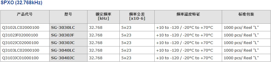 愛普生晶振,32.768KHZ系列有源晶振產(chǎn)品代碼一覽表