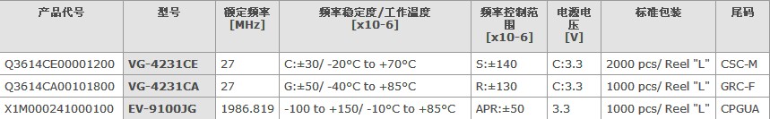 愛普生晶振,TCXO晶振系列產(chǎn)品代碼一覽表