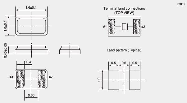 - 超小型,薄型。(1.6×1.0×0.45mm)。