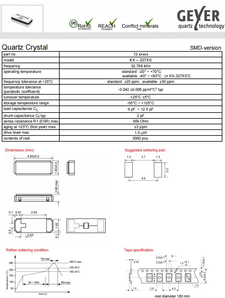 12.87121|32.768KHz|12.5pF|Geyer Crystal,Geyer Crystal,格耶晶振,KX-327XST無源晶振,12.87121晶振,石英晶體諧振器,4918mm晶振,SMD晶體,二腳貼片晶振,頻率32.768KHz,負載12.5pF,頻率容差30ppm,工作溫度-40~85°C,無鉛環保晶振,高穩定性晶振,低老化晶振,數碼相機晶振,打印機晶振,消費電子產品晶振,隨身聽晶振.