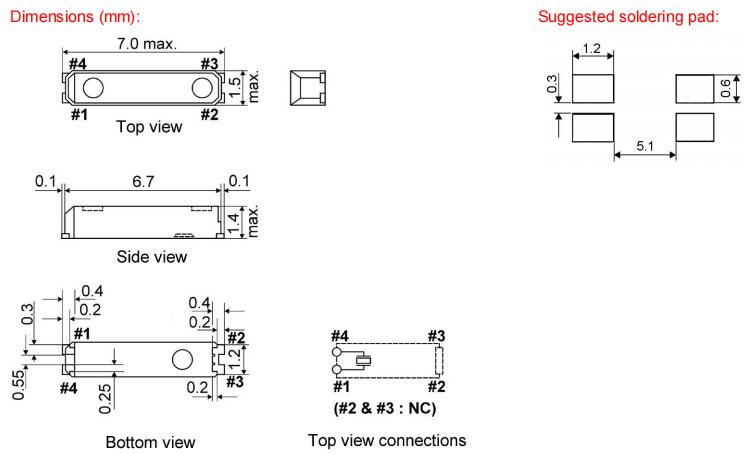 12.87132|32.768KHz|7.0pF|格耶SMD音叉晶體尺寸圖