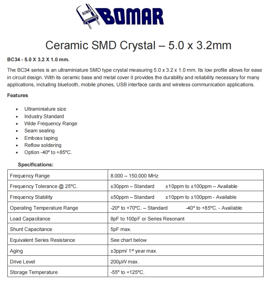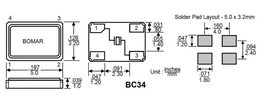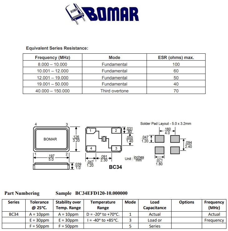 Bomar晶振,BC34EFI120-24.000000,6G模塊晶振規(guī)格表