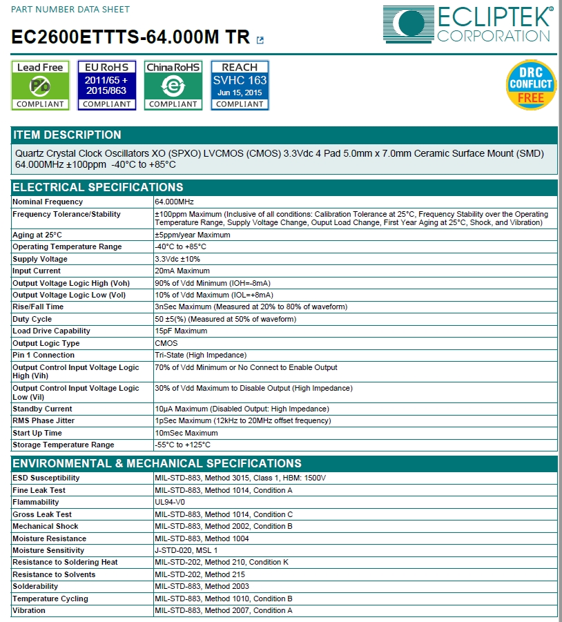| 物料編碼 | EC2600ETTTS-64.000M |