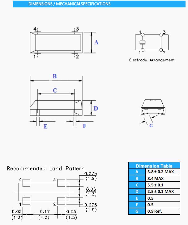 • 晶振尺寸:8.0*3.8*2.5mm