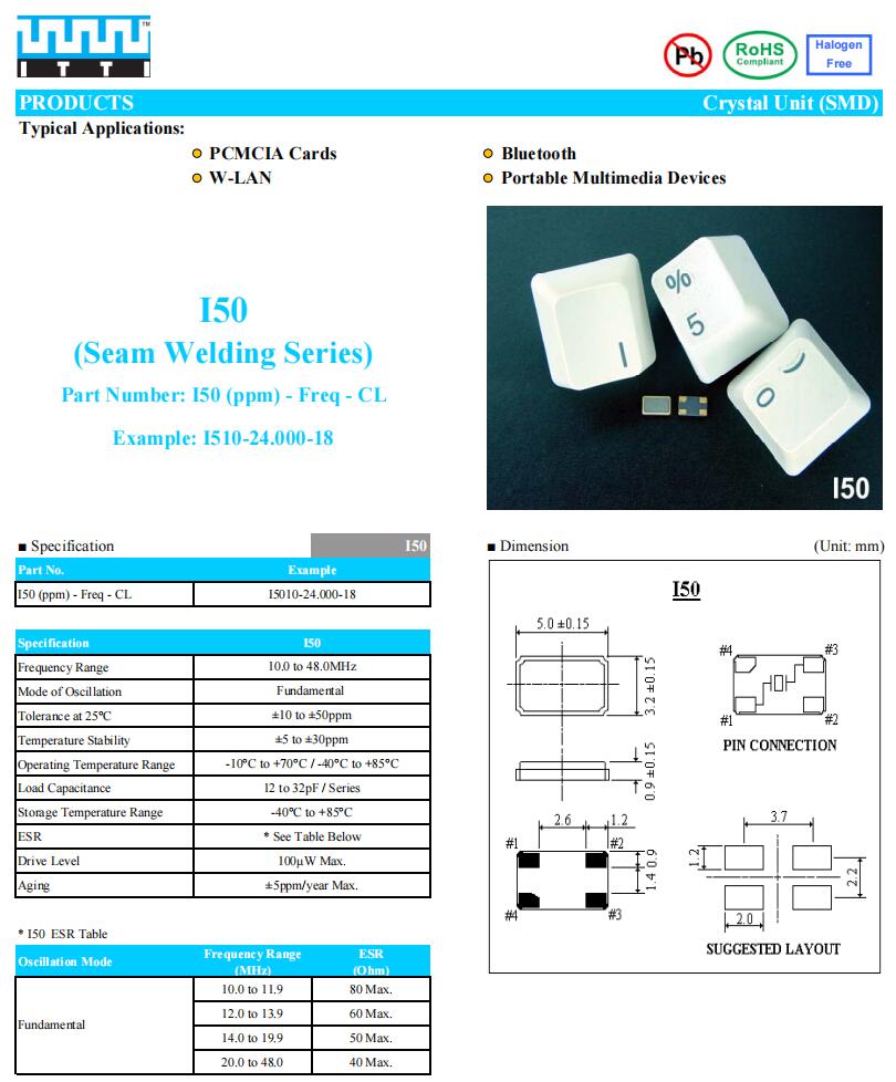 ITTI石英晶振,I5010-20.000-16,6G移動(dòng)無(wú)線電晶振規(guī)格表
