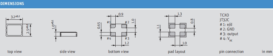 | Q 0.032768-JTX310-9-20-T2-HMR-LF | Jauch晶振 | JTX310 | 32.768kHz | ±20ppm | 9pF | -40°C ~ 105°C |