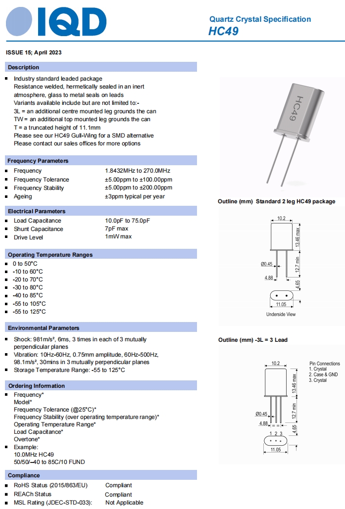 LFXTAL003320BULK|Resonator Crystal,IQD晶振,HC49無源晶振,LFXTAL003320BULK晶振,石英晶體諧振器,兩腳插件晶振,進口晶振,頻率24MHz,負(fù)載10pF,頻率容差20ppm,工作溫度-10~60°C,抗振動晶振,抗沖擊晶振,高可靠性晶振,藍(lán)牙音響晶振,數(shù)碼相機晶振,家用電視機頂盒晶振,智能體溫計晶振.
