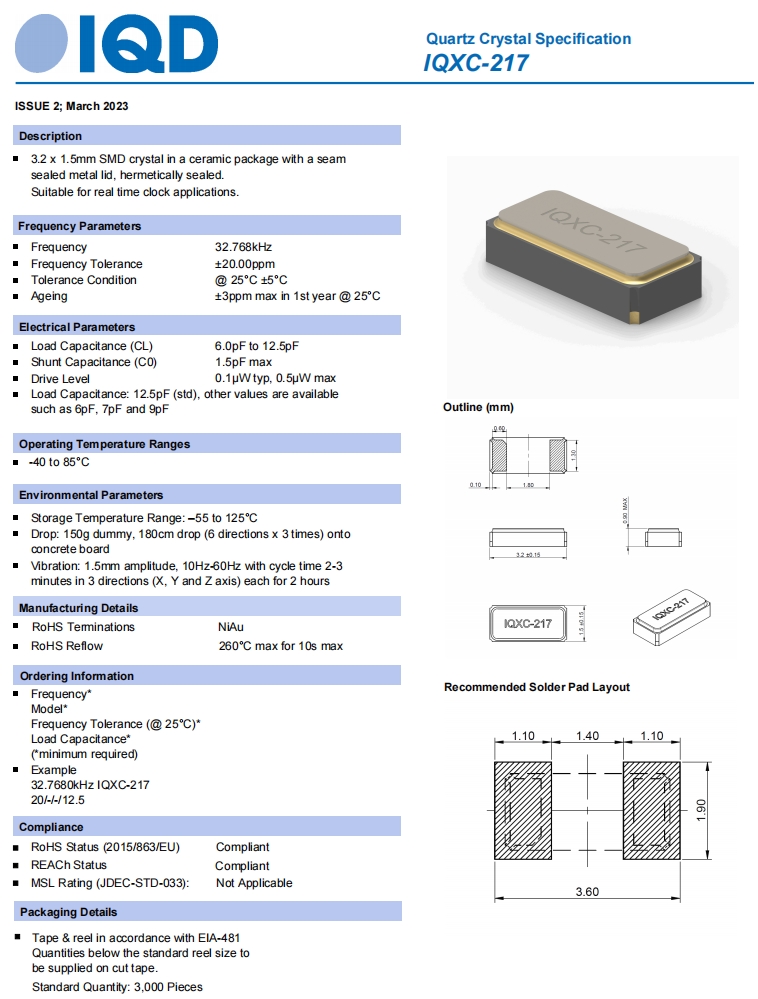 | LFXTAL084885 | IQXC-217 | 32.768 kHz | ±20ppm | 6pF | - |