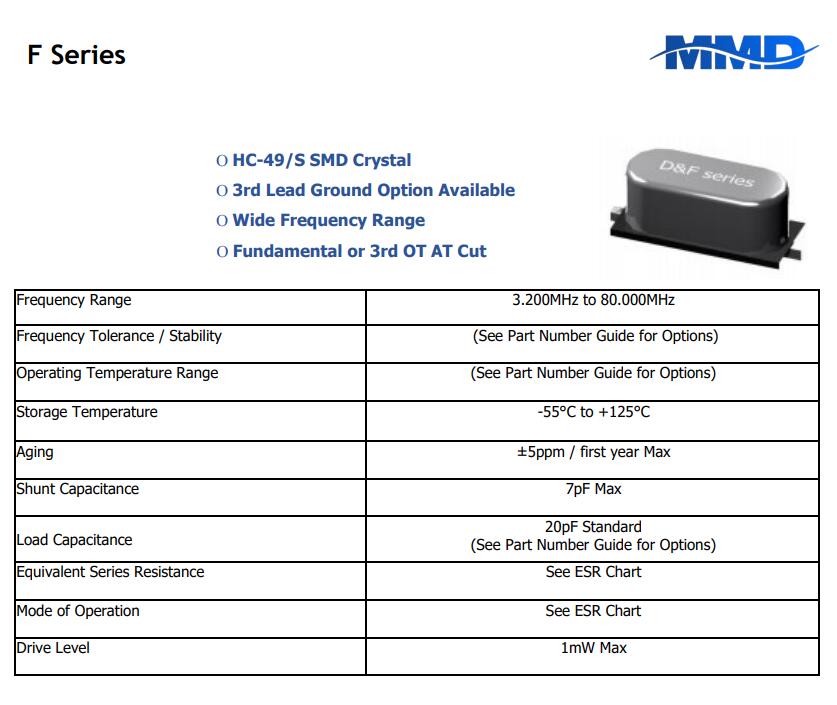 MMDCOMP麥迪康晶振,FF18BC1-24.576MHZ-T,6G相關設備晶振,歐美進口晶振,MMDCOMP麥迪康晶振,F石英晶振,無源晶振,HC-49/S SMD晶振,FF18BC1-24.576MHZ-T晶振,頻率24.576MHz,負載18pF,頻率公差30ppm,工作溫度-40~85°C,無鉛環保晶振,耐高溫晶振,6G相關設備晶振,室內路由器晶振,網絡終端晶振,微處理器晶振.