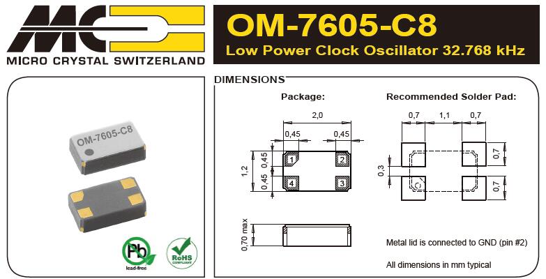 OM-7605-C8-32.768kHz-20PPM-TA-QC,微晶晶振
