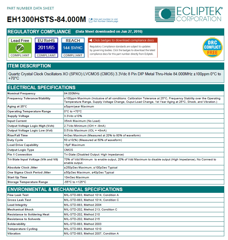 首頁歐美晶振ECLIPTEK晶振EH1300HSTS-84.000M|晶振|有源晶振