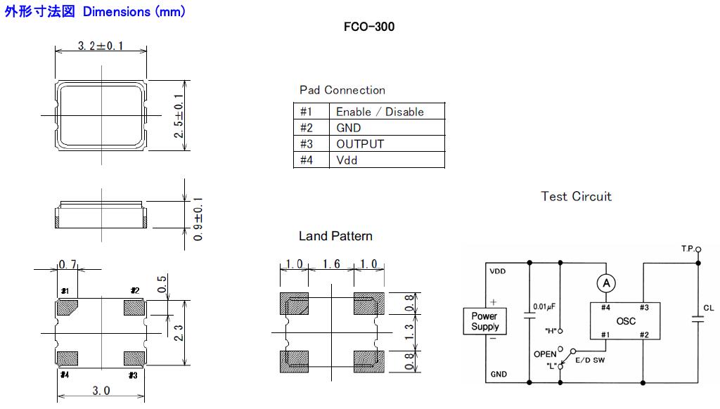 | Fujicom晶振規格 | 單位 | FCO-300晶振 | 石英晶振基本條件 |