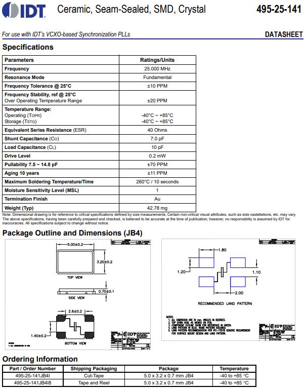 495-25-141JB4I晶振 參數(shù)表