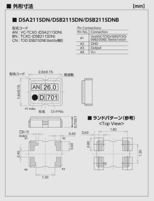 KDS晶振,DSA211SDN晶振,2016mm晶振,頻率范圍19.2MHz/26MHz/38.4MHz/40MHz/52MHz,厚度2.0*1.6*0.8mm,應用于無線通信設備等.