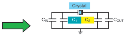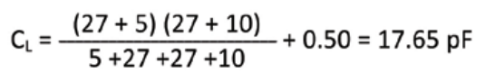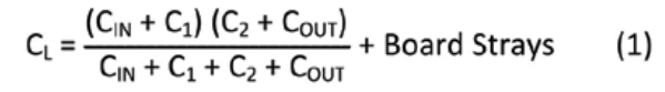 For example, let C1 = C2 = 27 pF; CIN = 5.0 pF and COUT = 10.0 pF and Board Strays = 0.50 pF.