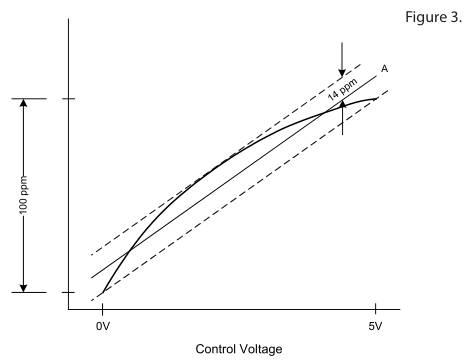 產生圖2所示特性的VCXO使用超突變結變容二極管,偏置以適應雙極性(±)控制電壓.產生圖3特性的VCXO使用具有施加的單極控制電壓的突變結變容二極管(在這種情況下為正).