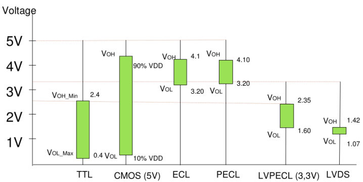 • LVDS stands for Low Voltage Differential Signaling,centered around operating voltage of 1.2V,regardless of power supply.