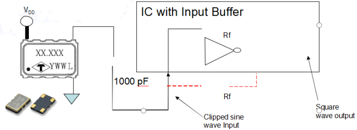 •To convert the clipped sine waveform to a square waveform signal such as CMOS, an input buffer is necessary.