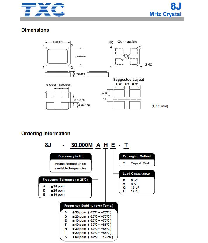 | 7V48000010 | 7V12006002 | 7V12000001 | TXC晶振 |