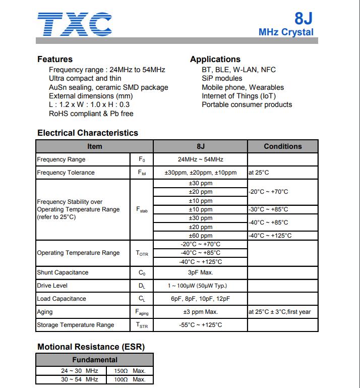 | 7M12000039 | 7B08000004 | 7V40000009 | TXC晶振 |