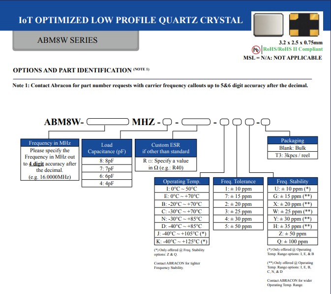 Abracon晶振解決節(jié)能MCU石英晶體ABM8W-13.0625MHZ-6-D1X-T3,ABM8W-20.0000MHZ-4-B1U-T3,藍(lán)牙晶振