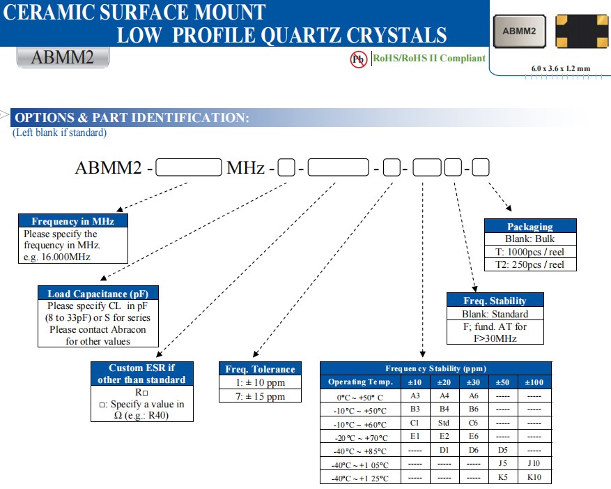 | ABMM2-19.6608MHZ-E2-T | Abracon晶振 | ABMM2 | MHz Crystal | 19.6608MHz | 4-SMD, No Lead |