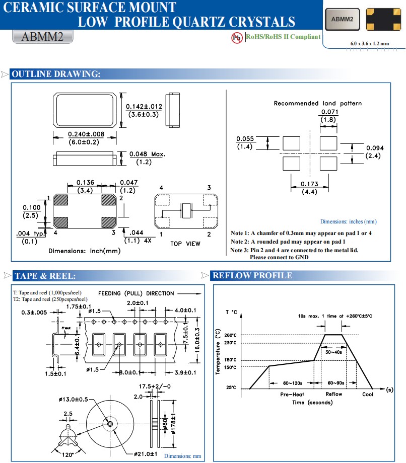 | ABMM2-12.000MHZ-E2-T | Abracon晶振 | ABMM2 | MHz Crystal | 12MHz | 4-SMD, No Lead |