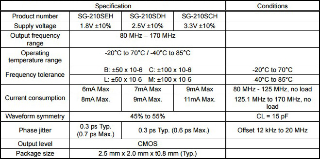 剛剛得知一重要消息,日本精工愛普生公司今兒個發布了一款新產品,對新品SG-210S做了個概述,2.5*2.0*0.8mm型的貼片晶振,振蕩在一個穩定的高頻80~170MHZ范圍內.