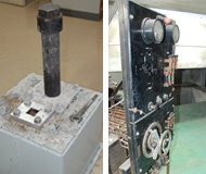 左手照片顯示了山梨大學仍然存在的最老的高壓滅菌器。這個高壓滅菌器的建成時間并不知道。該高壓釜的規格約為30毫米,深度為510毫米,繼續用于在露天講座等生產人造石英。右手照片拍攝于山梨大學水晶科學與技術研究所(原無機合成研究所)的地下室。過去,這里安裝了一個大型實驗高壓滅菌器。