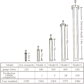 到1965年,他們已經開發了'B型',一個300mm規格,深度為5000mm的高壓滅菌器。其中兩個安裝在公司的Sagami工廠(神奈川縣的Samukawa-machi)。當時,模型B被吹噓為世界上最大的高壓滅菌器,它極大地降低了人造石英的成本。