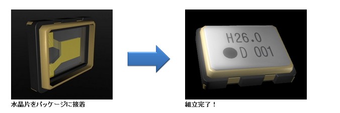 再把形成電極的水晶片用導電膠把陶瓷等封面包裝固定.從空中落下.經過反復練習,各種震動沖擊,再把其粘貼好,以100萬分之一的單位檢查調整頻率,為了防止電極氧化,需要在真空和氮氣下做最終的封裝.