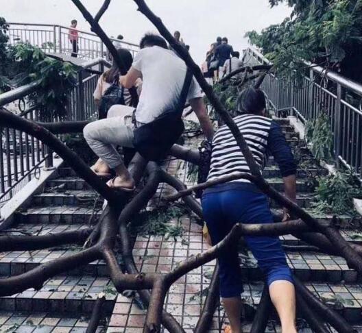 臺風過后的晚上都在不停的清理道路,晚上接到通知的上班族們心都涼了半截.一大早起來上班,天吶,就好像是進入了原始森林,到處都是樹木,還是那種被吹斷了的.人行道,公交站臺,道路路口,天橋路口全都堵滿了密密麻麻的樹支.這讓上班族們到處找空洞往里頭鉆.今天早上來上班的時候,有個同事居然還問我公司在哪,找不到公司的入口了.(當時我忍住了沒笑出聲,直接跟同事說在那堆樹支里找個空洞鉆過去就能看到了)