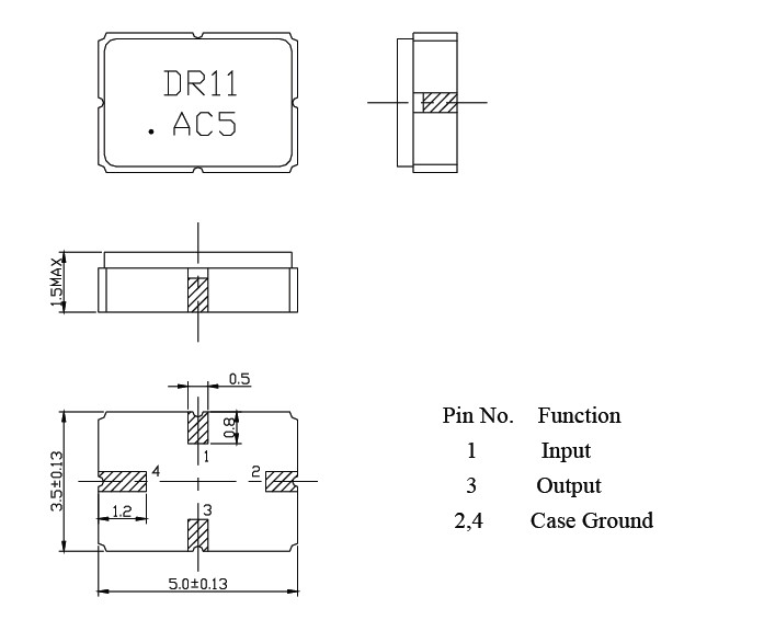 R315M SMD5035聲表面諧振器 濾波器尺寸