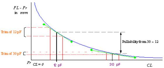 從圖中可以看出頻率和電容存在著很明顯的反比關系,也就是說當負載變小時頻率變化在增大;當負載增大時,頻率變化的幅度也在降低;這樣我們就可以總結出一系列的解決辦法,也就是如果頻率計數器測量的頻率高于目標頻率,則應增加電容值(CL或Cd和Cg)以降低頻率轉換為目標頻率,反之亦然.