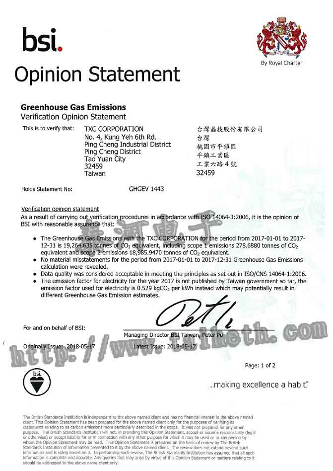 臺灣TXC晶振GHGEV 1443認證