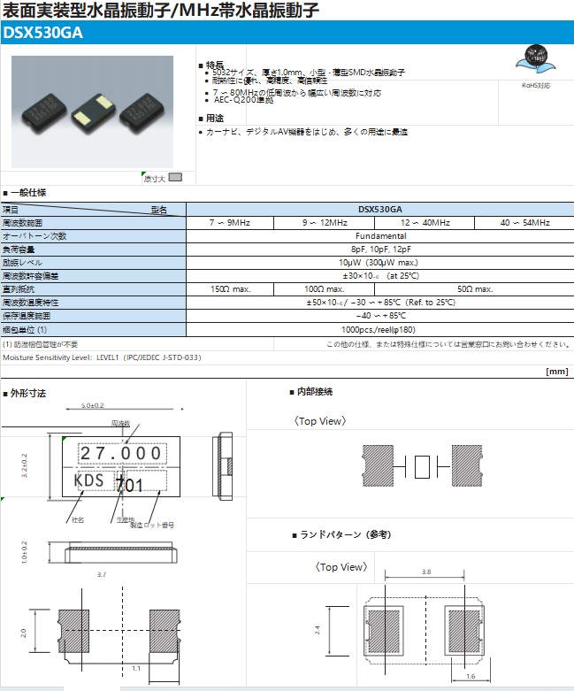 首頁進口晶振1C707600CC1B|DSX530GA|5032mm|7.600MHZ|10PF|30PPM