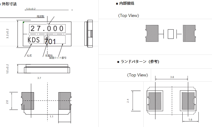• 晶振尺寸:5.0*3.2*1.2mm