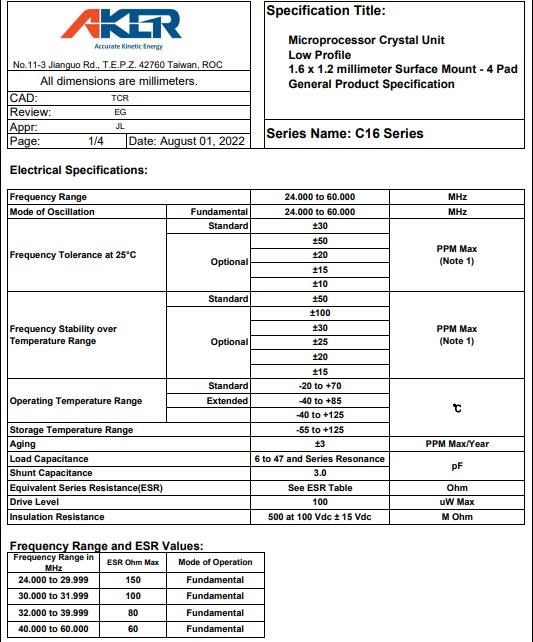 C16-48.000-10-3030-X-R|48MHz|10pF|AKER品牌規(guī)格表