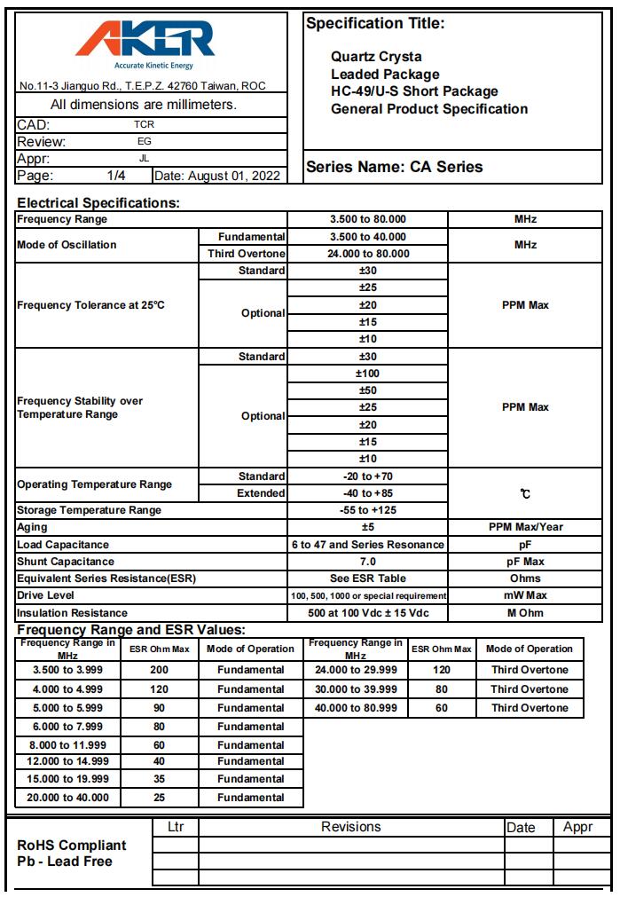 CA-32.000-20-2030-X-R|32MHz|20pF|AKER安基晶振,臺(tái)灣晶振,AKER晶振,CA插件晶振,無(wú)源晶振,CA-32.000-20-2030-X-R晶振,HC-49S晶振,石英晶體諧振器,進(jìn)口晶振,頻率32MHz,負(fù)載20pF,頻率容差20ppm,工作溫度-40~85°C,低成本晶振,低老化晶振,高精度晶振,數(shù)碼相機(jī)晶振,DVD家電影音系統(tǒng)晶振,電子體重秤晶振,家用電視機(jī)頂盒晶振.
