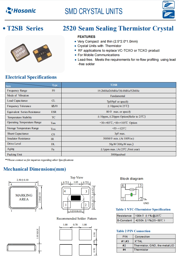 | E2SB52.0000F10E12 | Hosonic晶振 | E2SB | 52MHz | 10pF | ±10ppm | ±10ppm |
