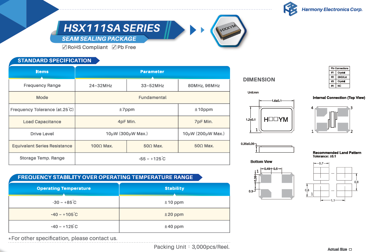 領先全球的航空航天晶振,加高低損耗晶體,X1C026000BC1H-HZ晶振,臺灣HELE晶振公司,進口晶振,臺產晶振,加高晶振,高質量晶振,高精度晶振,超小型晶振,1612晶振,數碼相機晶振,智能手機晶振,智能穿戴設備晶振,筆記本電腦晶振,環保無鉛晶振,無源晶振,四腳晶振,貼片晶振,石英晶振。特點:超小型尺寸,外形低調(1.65x1.25x0.4)mm高精度、可靠性高,熱量高抵抗針對設計空間有限的智能手機應用程序、小型化無線模塊設備、RFID應用程序和其他基于消費者的產品的優化解決方案。
