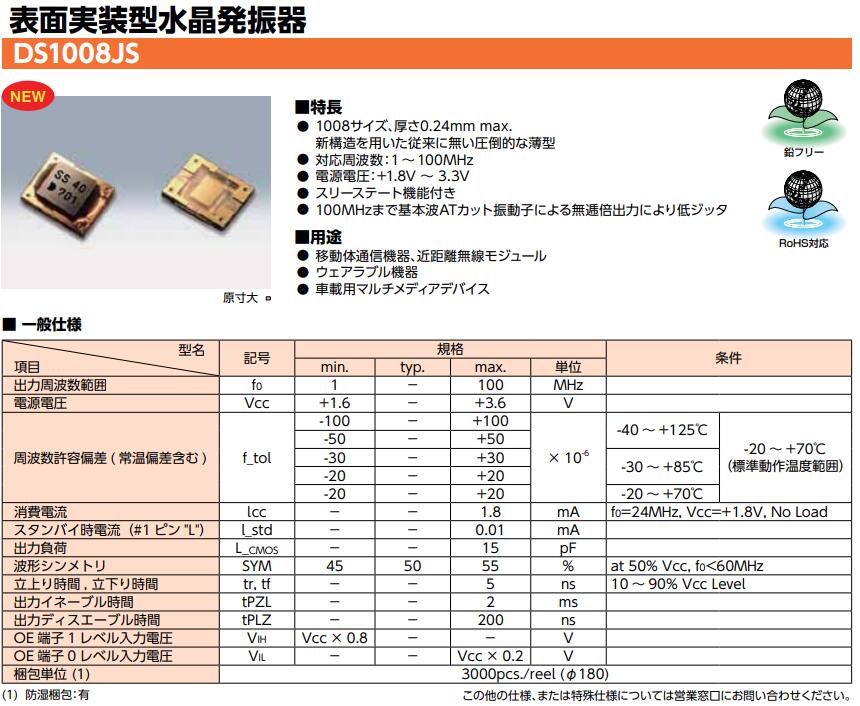 KDS研發新款產品DS1008JS晶振尺寸為1.05*0.85*0.22mm,打破了傳統石英晶振的尺寸大小。1610晶振還未開始量產,更小尺寸的貼片晶振又開始研發出來了。