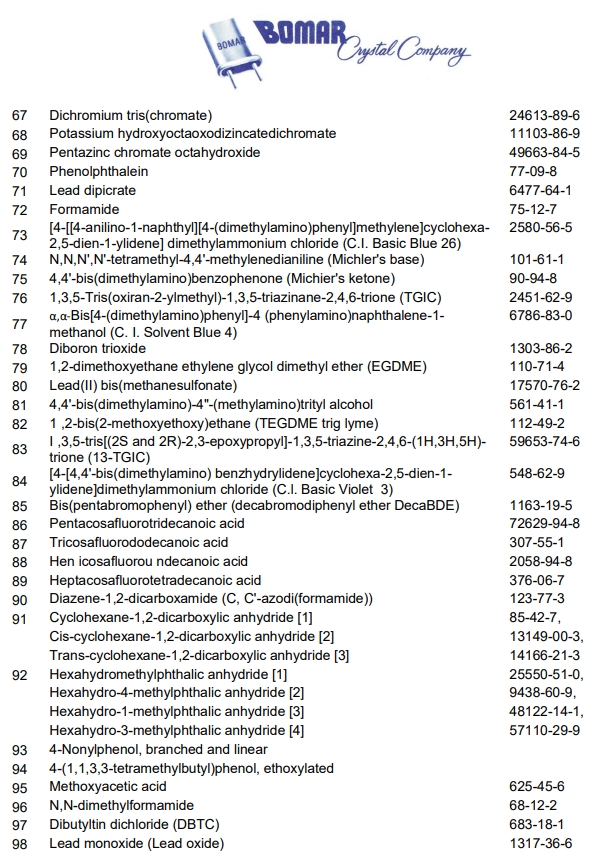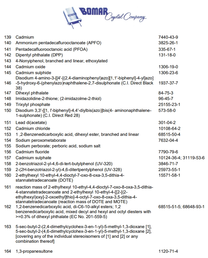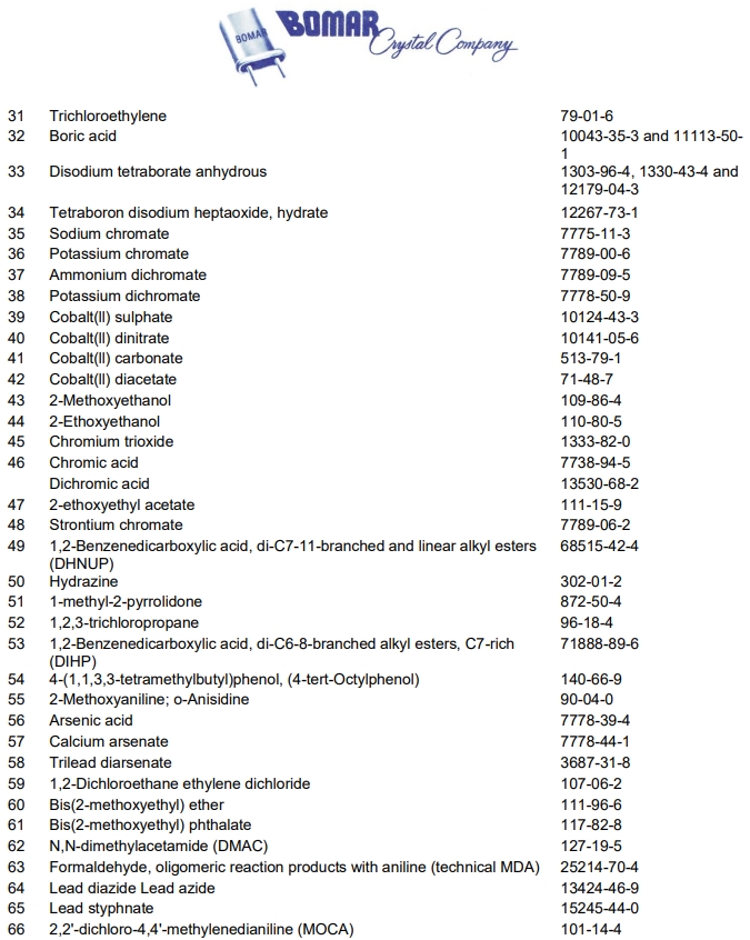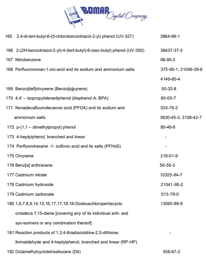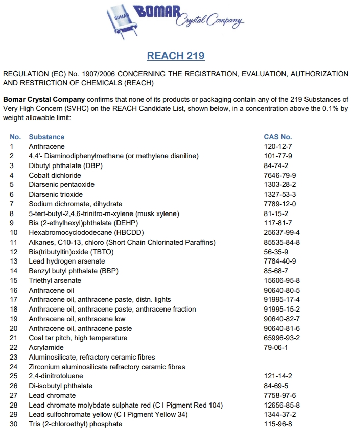 Bomar自證旗下所有晶振產品均符合歐盟RoHS合規倡議和REACH倡議
