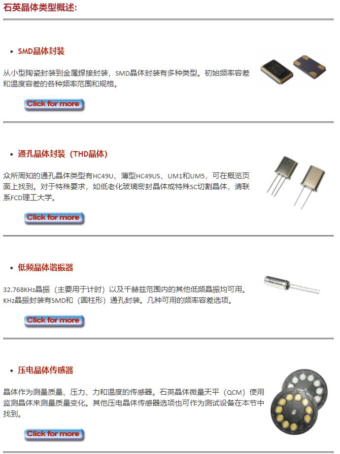 石英晶體諧振器、聲表面波諧振器、QCM傳感器,各種頻率和公差的全系列SMD通孔晶體類型。