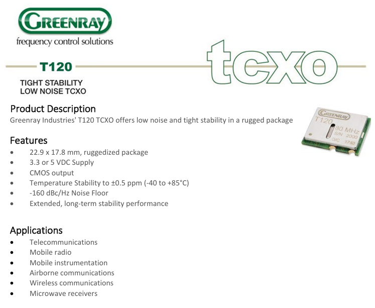 美國格林雷晶振Greenray之T120 TCXO產品剖析