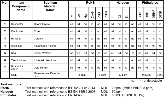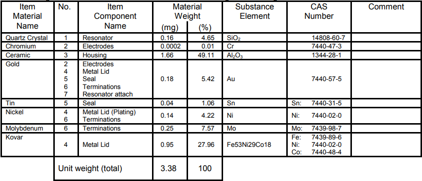CM8V-T1A 0.3晶振材料成分聲明和環境信息