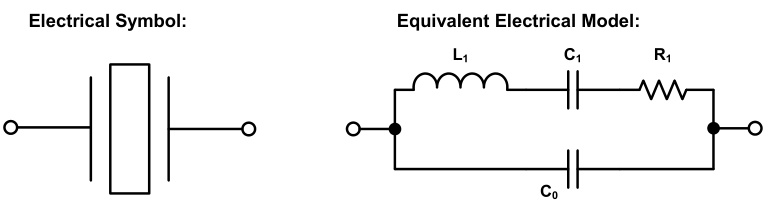 石英晶體單元是無源元件,沒有極性.基本共振頻率下石英晶體的等效電路由等效電氣模型表示: